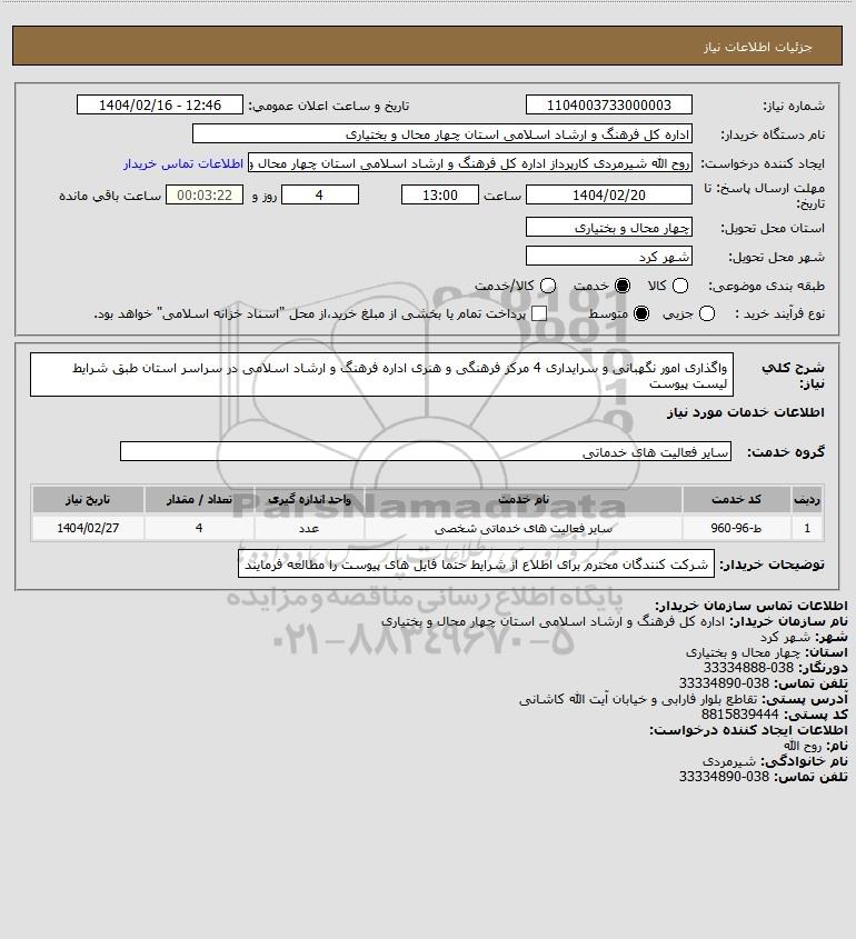 نام دستگاه خریدار:اداره کل فرهنگ و ارشاد اسلامی استان چهار محال و بختیاری