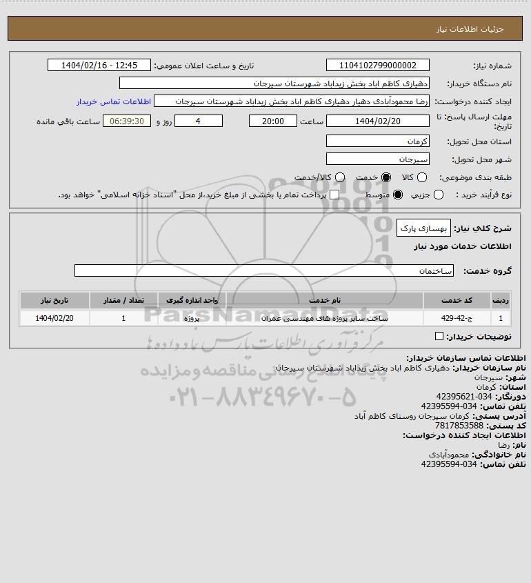 نام دستگاه خریدار:دهیاری کاظم اباد بخش زیداباد شهرستان سیرجان