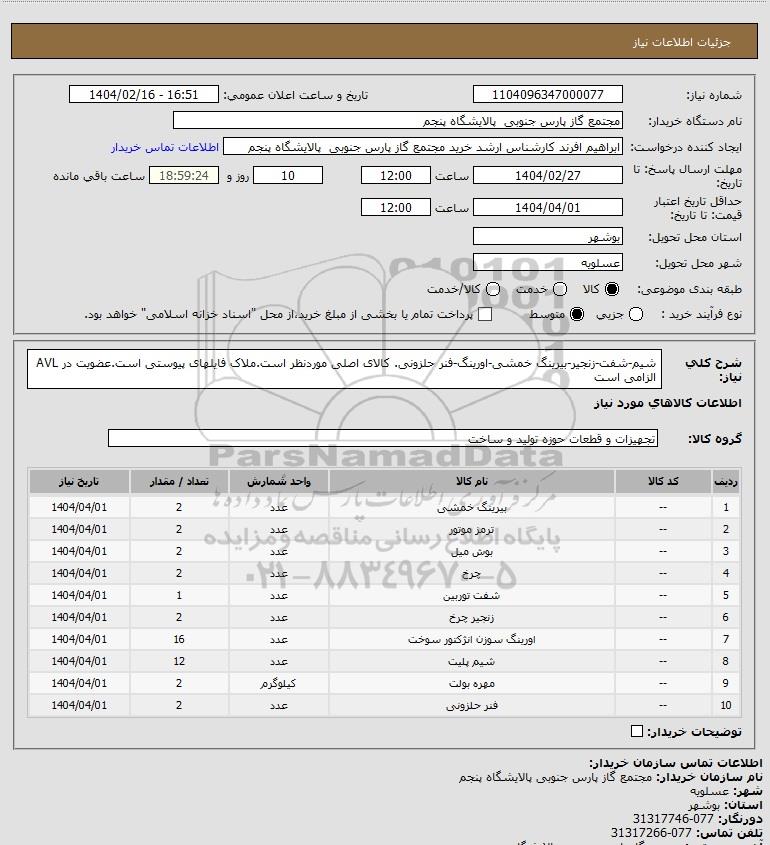 | 5 | -- | شفت توربین | عدد | 1 | 1404/04/01 |
