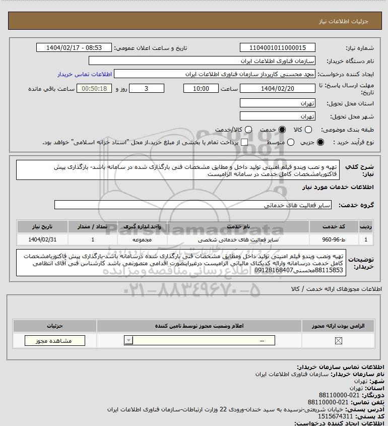 نام سازمان خریدار: سازمان فناوری اطلاعات ایران