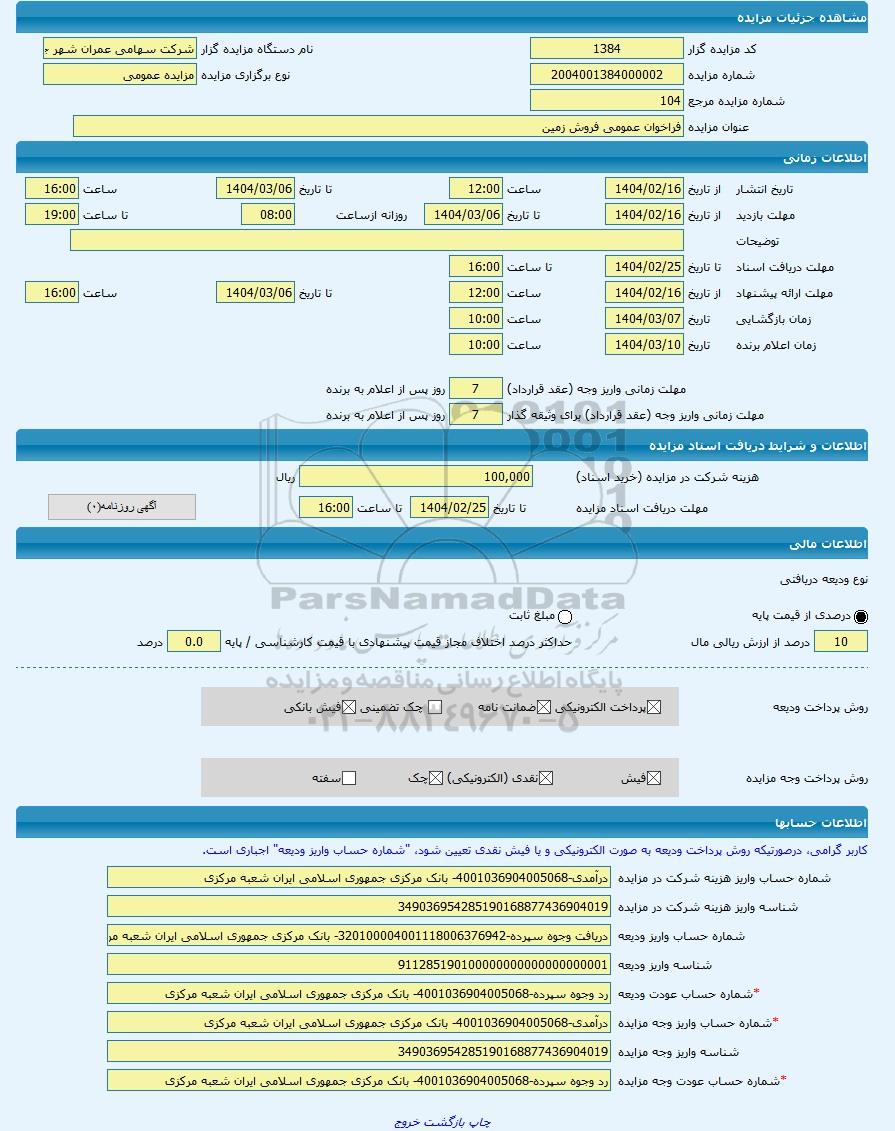 | شماره مزایده مرجع | 104 | |||