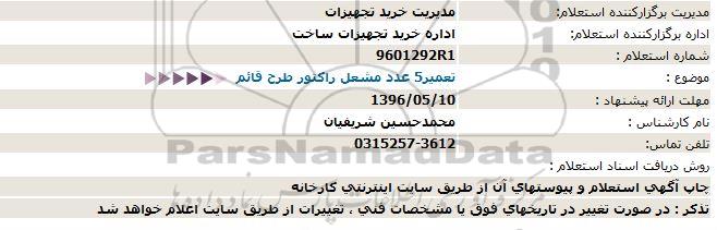 موضوع : تعمیر 5 عدد مشعل راکتور طرح قائم