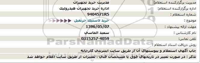 اداره برگزارکننده استعلام: اداره خرید تجهیزات هیدرولیک
