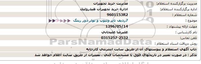 اداره برگزارکننده استعلام: اداره خرید تجهیزات هیدرولیک