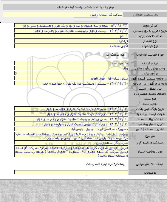 6 مناقصه گازرسانی به حاجی آباد زرین (سایت اردکان) 9642559 1404/07/12 new not special not payed یزد