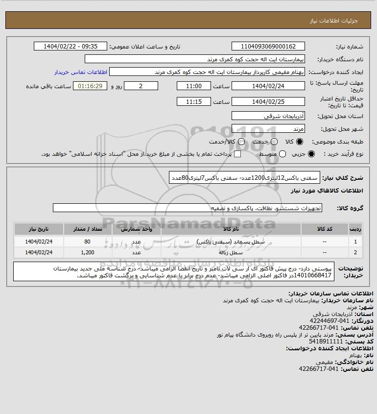 شرح کلی نیاز: سفتی باکس12لیتری1200عدد- سفتی باکس7لیتری80عدد