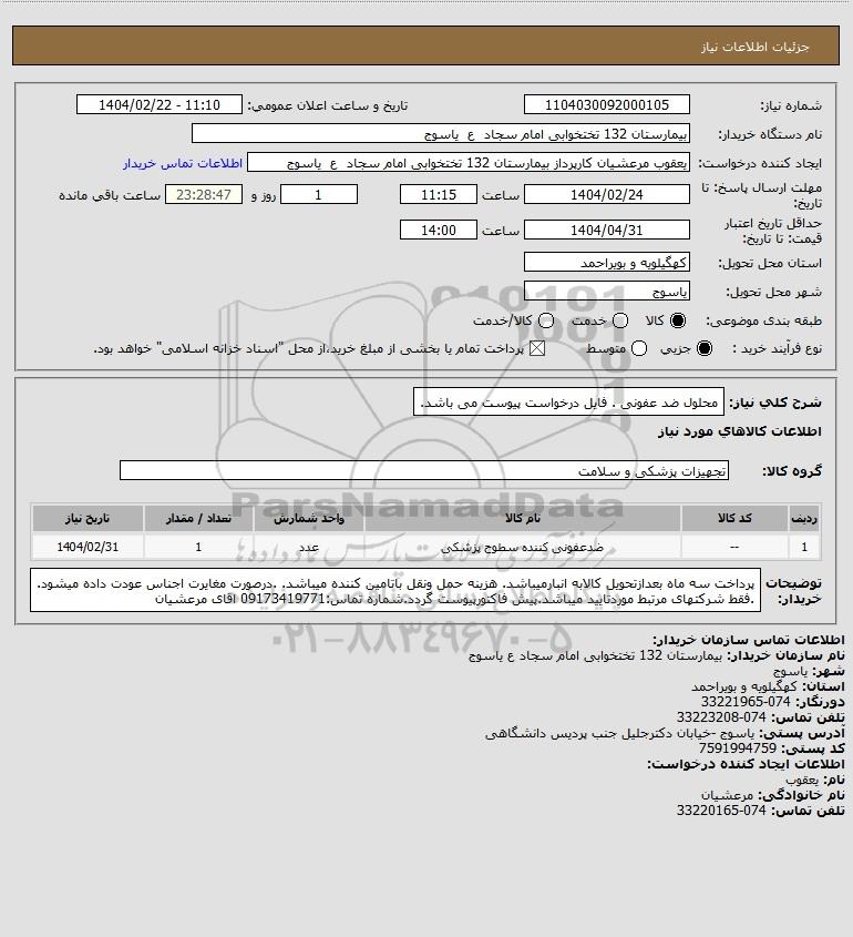 نام دستگاه خریدار:بیمارستان 132 تختخوابی امام سجاد ع یاسوج