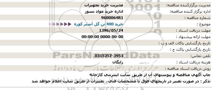 اداره برگزار کننده استعلام: اداره خرید مواد نسوز