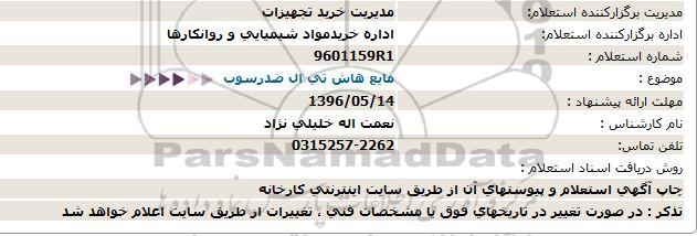 استعلاممایع هاش تی ال ضدرسوب 96.5.8 از کلیه افراد متخصص و شرکتها واجد شرایط دعوت به عمل میآید در مناقصه با کد خبرگزاری پارس نماد: 901748 شرکت نمایند.