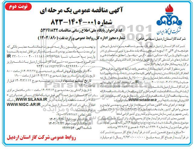آگهی مناقصه عمومي يك مرحله اي شماره 001-1404-823 - نوبت دوم