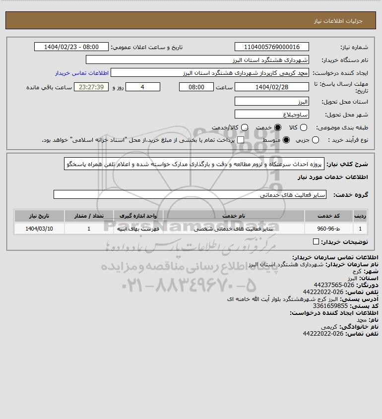 نام دستگاه خریدار:شهرداری هشتگرد استان البرز