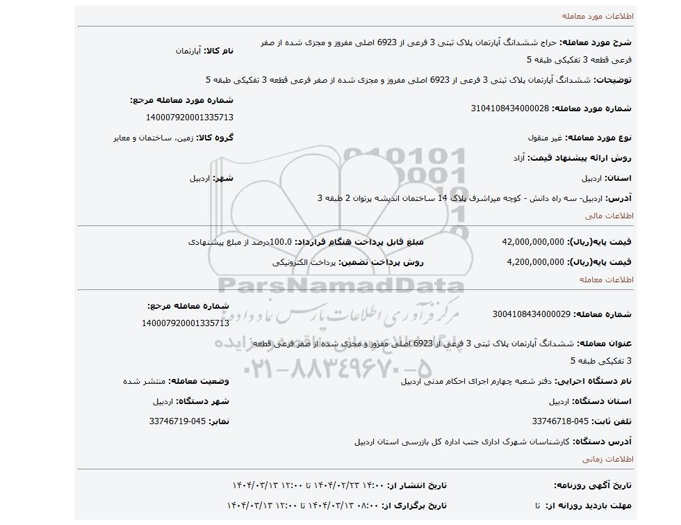 شماره معامله: 3004108434000029 | شماره معامله مرجع: 140007920001335713 | |
