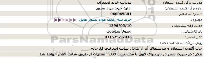موضوع : خرید سه ردیف مواد نسوز عایق