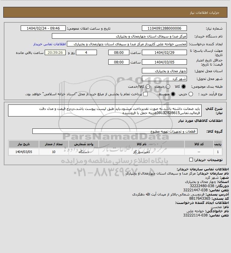 نام سازمان خریدار: مرکز صدا و سیمای استان چهارمحال و بختیاری
