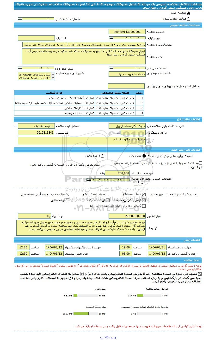 مبلغ تضمین | 2,930,000,000 | واحد پول | ریال |