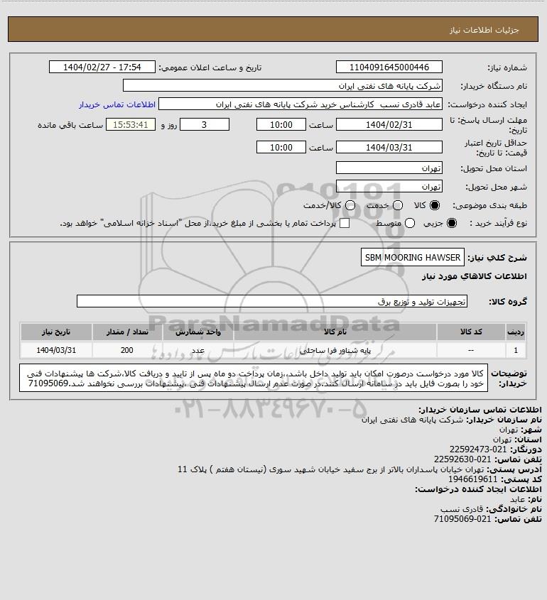 | 1 | -- | پایه شناور فرا ساحلی | عدد | 200 | 1404/03/31 |
