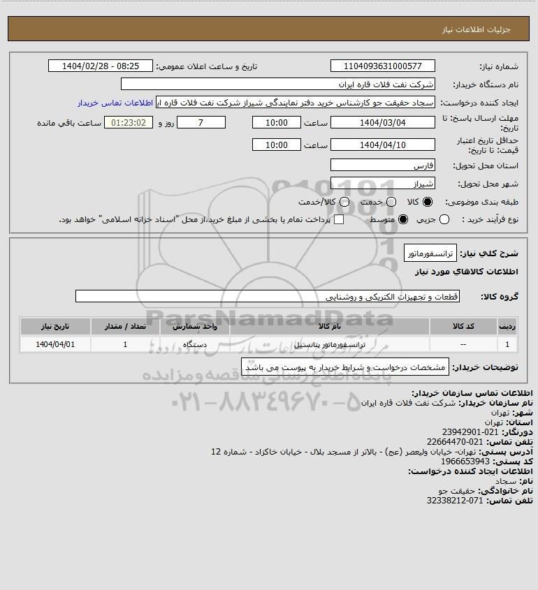 نام دستگاه خریدار:شرکت نفت فلات قاره ایران