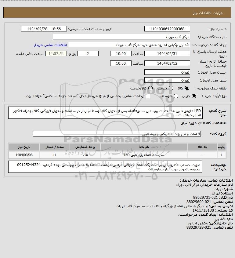نام سازمان خریدار: مرکز قلب تهران
