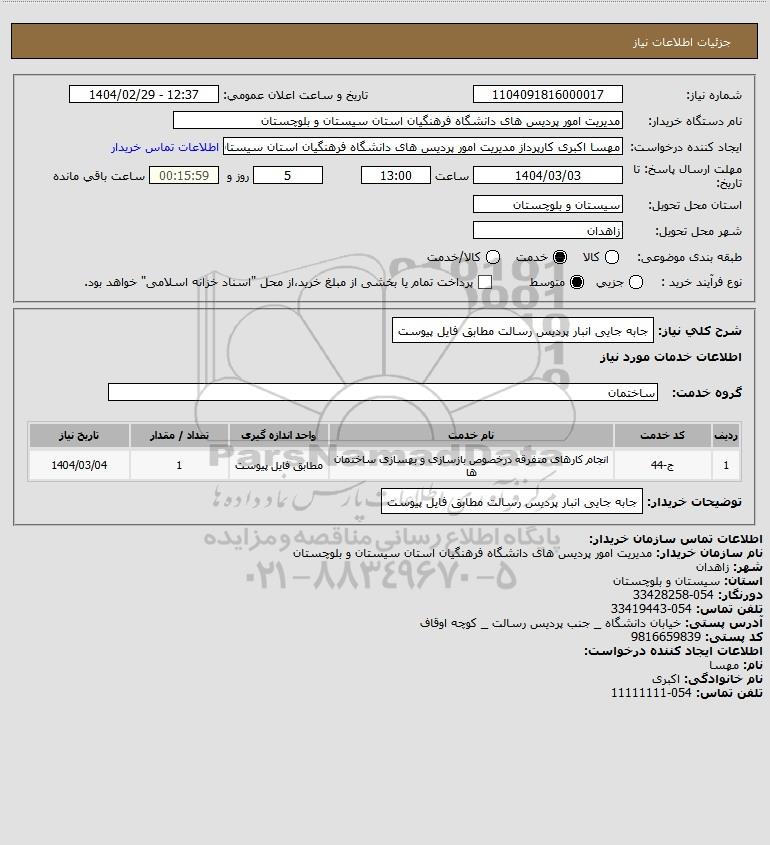 استعلام جابه جایی انبار پردیس رسالت مطابق فایل پیوست, استعلام جابه جایی انبار پردیس رسالت مطابق فایل پیوست