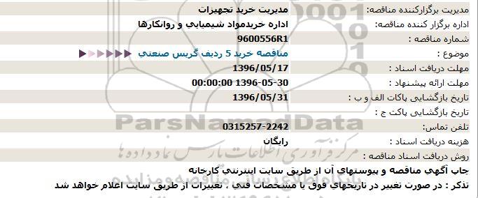 استعلام تعمیر 5 ردیف گریس صنعتی , استعلام ,استعلام تعمیر 5 ردیف گریس صنعتی