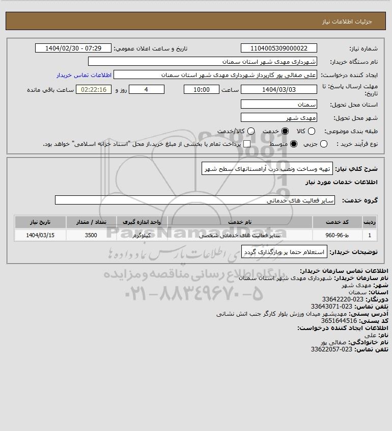 نام دستگاه خریدار:شهرداری مهدی شهر استان سمنان