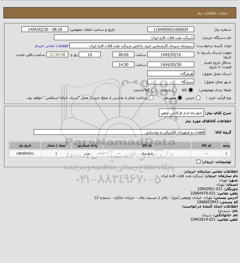 استعلام تابلو راه انداز فرکانس متغیر, استعلام تابلو راه انداز فرکانس متغیر