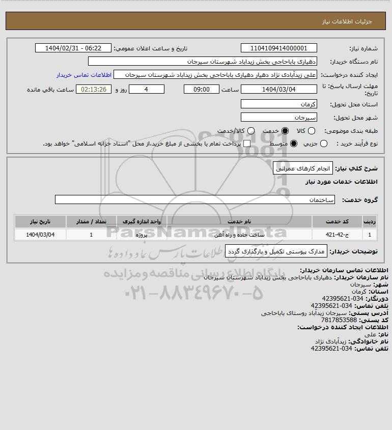 نام دستگاه خریدار:دهیاری باباحاجی بخش زیداباد شهرستان سیرجان