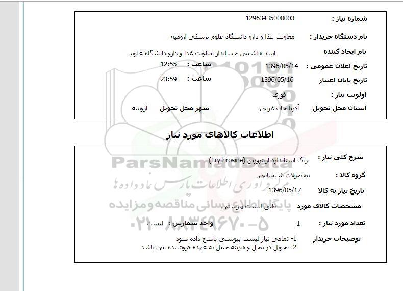 نام دستگاه خریدار: معاونت غذا و دارو دانشگاه علوم پزشکی ارومیه