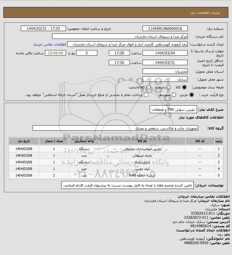 نام دستگاه خریدار:مرکز صدا و سیمای استان مازندران