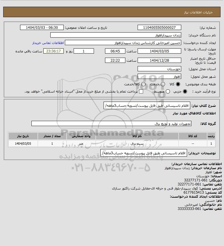 | 1 | -- | سیم برق | متر | 1 | 1404/03/05 |