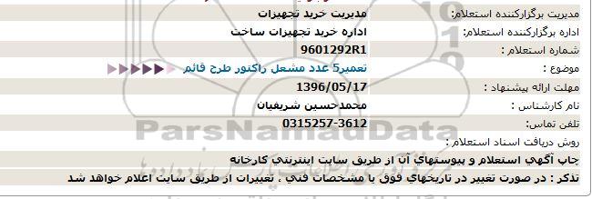 موضوع : تعمیر 5 عدد مشعل راکتور طرح قائم