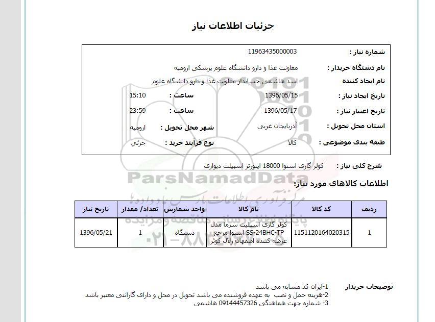 نام دستگاه خریدار: معاونت غذا و دارو دانشگاه علوم پزشکی ارومیه