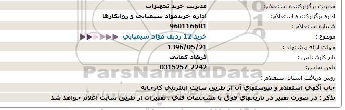 موضوع : خرید 12 ردیف مواد شیمیایی