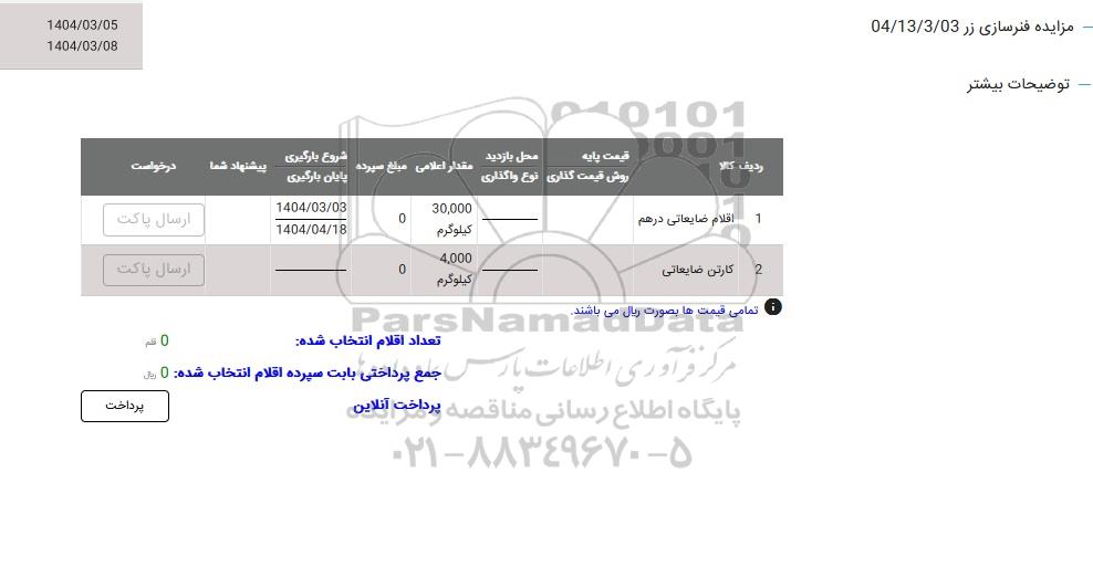 | 1 | انواع اقلام ضایعاتی درهم | 30.000 کیلوگرم | 1404.3.3 1404.4.18 |