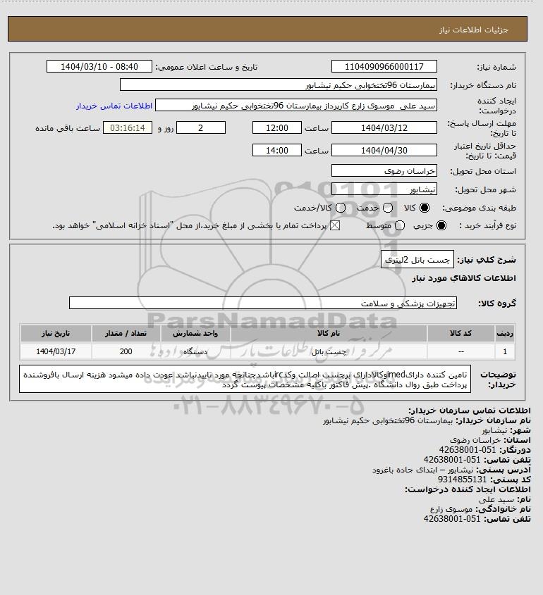 نام دستگاه خریدار:بیمارستان 96تختخوابی حکیم نیشابور