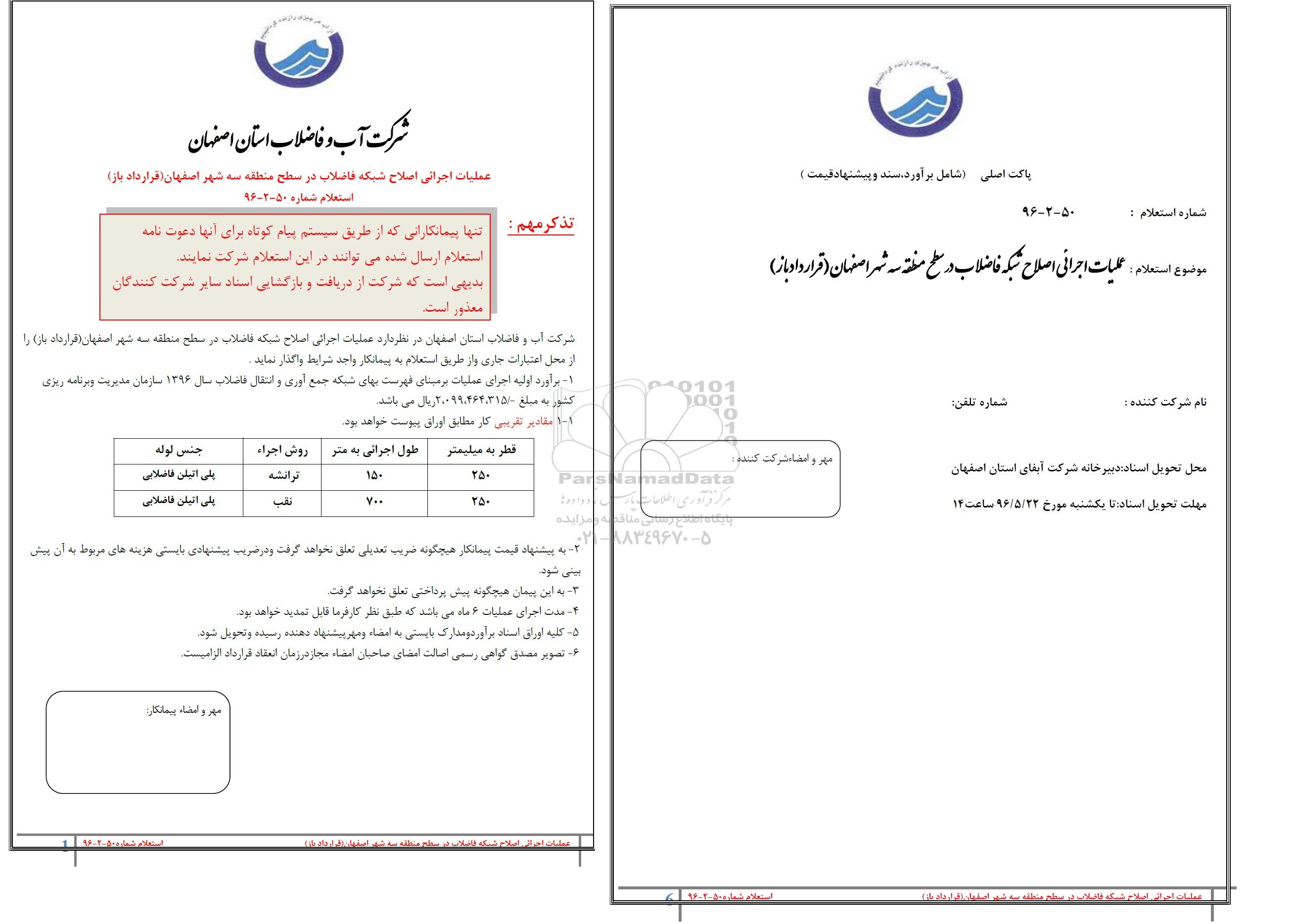 برای شرکت در مناقصه حتما از تصویر آگهی در سایت پارس نماد داده ها استفاده نمایید