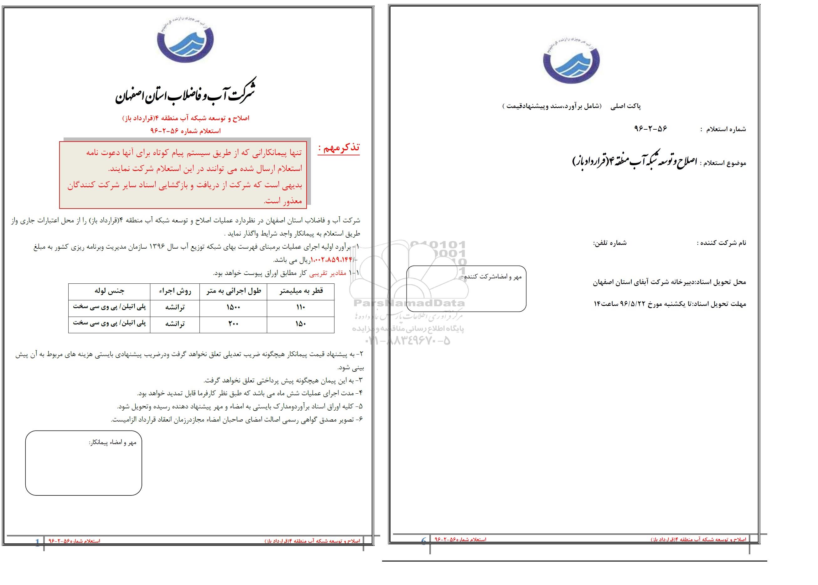 استعلام اصلاح و توسعه شبکه آب منطقه 4, استعلام ,استعلام اصلاح و توسعه شبکه آب منطقه 4
