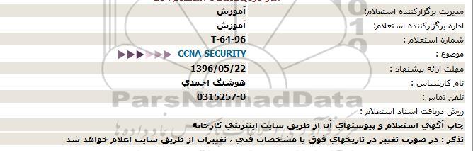 استعلام بها و موضوع استعلام استعلام CCNA SECURITY به اطلاع کلیه شرکتها و افراد متخصص واجد شرایط میرساند، آگهی گذار در نظر دارد از طریق استعلام بها، نسبت به انتخاب و دریافت پیشنهادات اقدام نماید. این استعلام با کد آگهی ثبت شده در سامانه خبرگزاری پارس نماد : 910891 منتشر شده است. مشخصات استعلام : تاریخ شروع استعلام: 1396/05/21 آخرین مهلت ارسال پیشنهاد قیمت : 1396/05/22 و محل اجرای پروژه : استان اصفهان میباشد. استعلام قیمت مورد درخواست : استعلام CCNA SECURITY با دستهبندیهای تخصصی و گروه های مرتبط : مشاوره تحقیقات و مدیریت استاندارد, استعلام اطلاع رسانی میگردد.