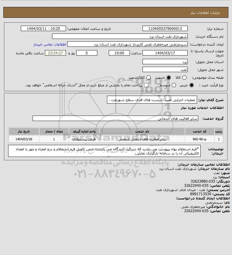 نام دستگاه خریدار:شهرداری تفت استان یزد