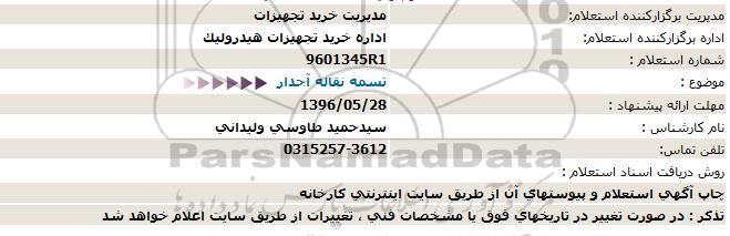 اداره برگزارکننده استعلام: اداره خرید تجهیزات هیدرولیک
