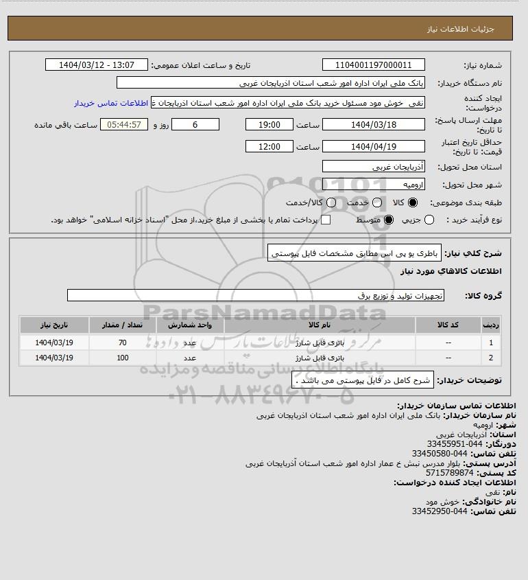 شرح کلی نیاز: باطری یو پی اس مطابق مشخصات فایل پیوستی