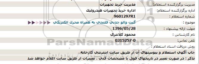 اداره برگزارکننده استعلام: اداره خرید تجهیزات هیدرولیك