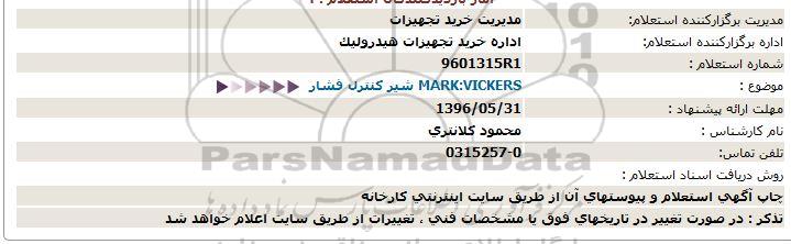 موضوع : MARK:VICKERS شیر کنترل فشار