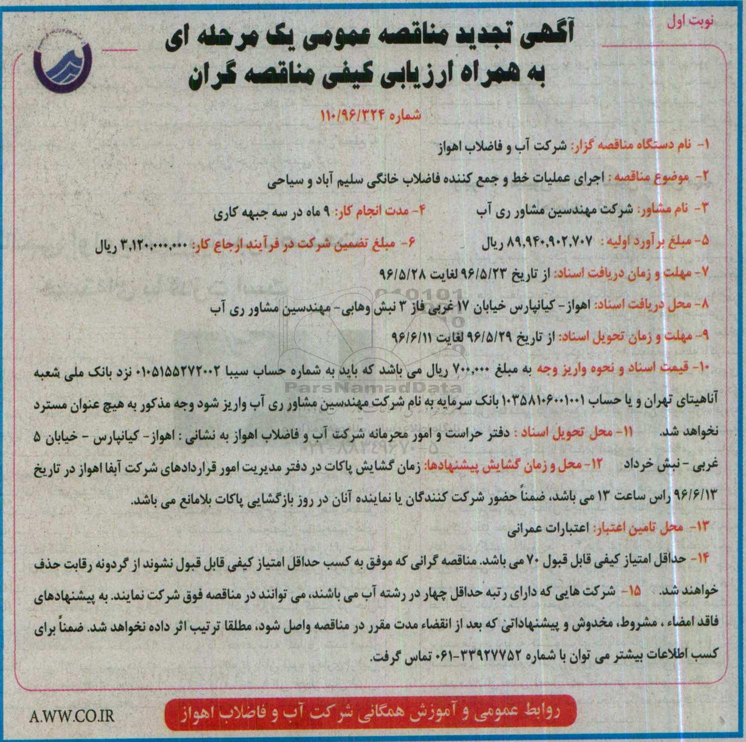 مناقصه اجرای عملیات خط و جمع کننده فاضلاب خانگی - تجدید, آگهی تجدید مناقصه عمومی یک مرحله ای ,مناقصه اجرای عملیات خط و جمع کننده فاضلاب خانگی -تجدید