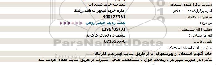 استعلام هفت ردیف فیلتر روغن, استعلام هفت ردیف فیلتر روغن