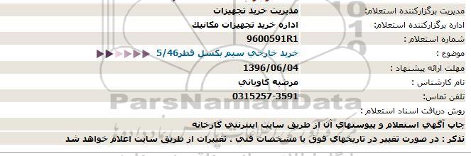 اداره برگزارکننده استعلام: اداره خرید تجهیزات مکانیک