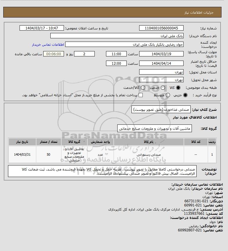 نام دستگاه خریدار:بانک ملی ایران