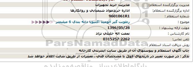 استعلام رطوبت گیر آلومینا اکتیوبا دانه بندی 6 میلیمتر 96.5.24, استعلام , استعلام رطوبت گیر آلومینا اکتیوبا دانه بندی 6 میلیمتر 96.5.24