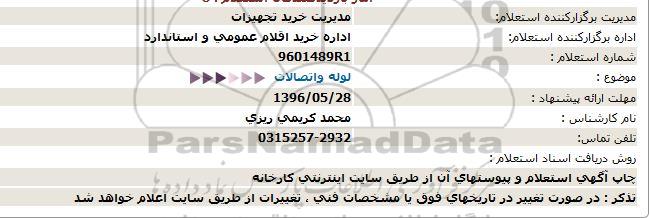 استعلام لوله و اتصالات , استعلام , استعلام لوله و اتصالات