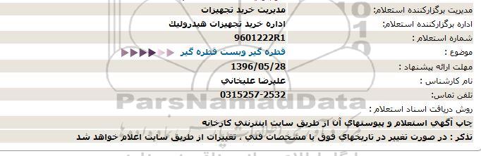 اداره برگزارکننده استعلام: اداره خرید تجهیزات هیدرولیک